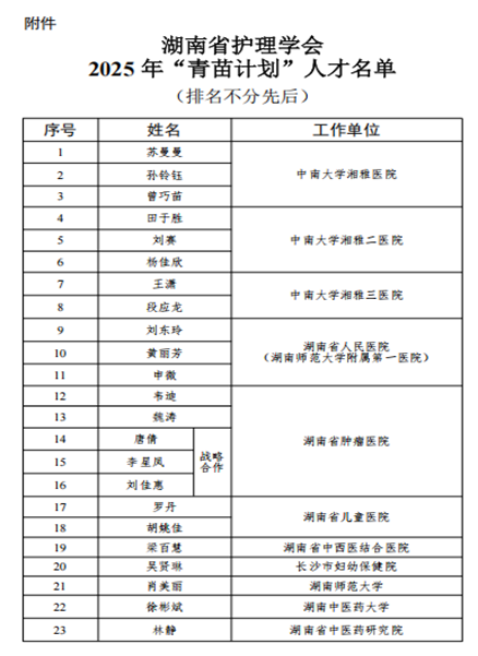 近日,湖南省护理学会正式公布了2025年“青苗计划”人才项目入选名单。经过严格的资格审查、专家评审和综合评议,护理学院肖美丽博士成功入选该人才项目。据悉,湖南省护理学会“青苗计划”人才项目旨在选拔省内医疗卫生机构、高等院校、科研院所从事护理学相关的青年护理人才,在人才建设、经费投入、科研项目申报等方面支持其围绕护理学科前沿、临床实践难点及健康服务需求开展创新性研究,提升科研能力和学术水平,为湖南省...