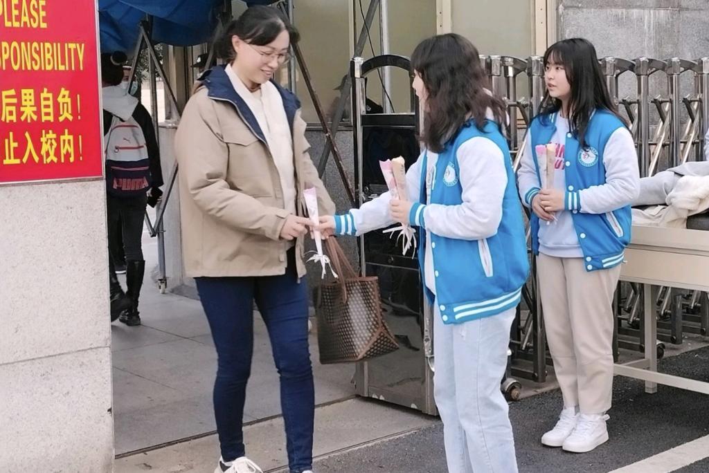 志愿者们在我院前门、食堂、宿舍前坪、综合楼等地点为女性老师及其他女性工作者们送上一束鲜花和一句暖心的祝福。此次活动得到了女性同胞们的赞誉和肯定。