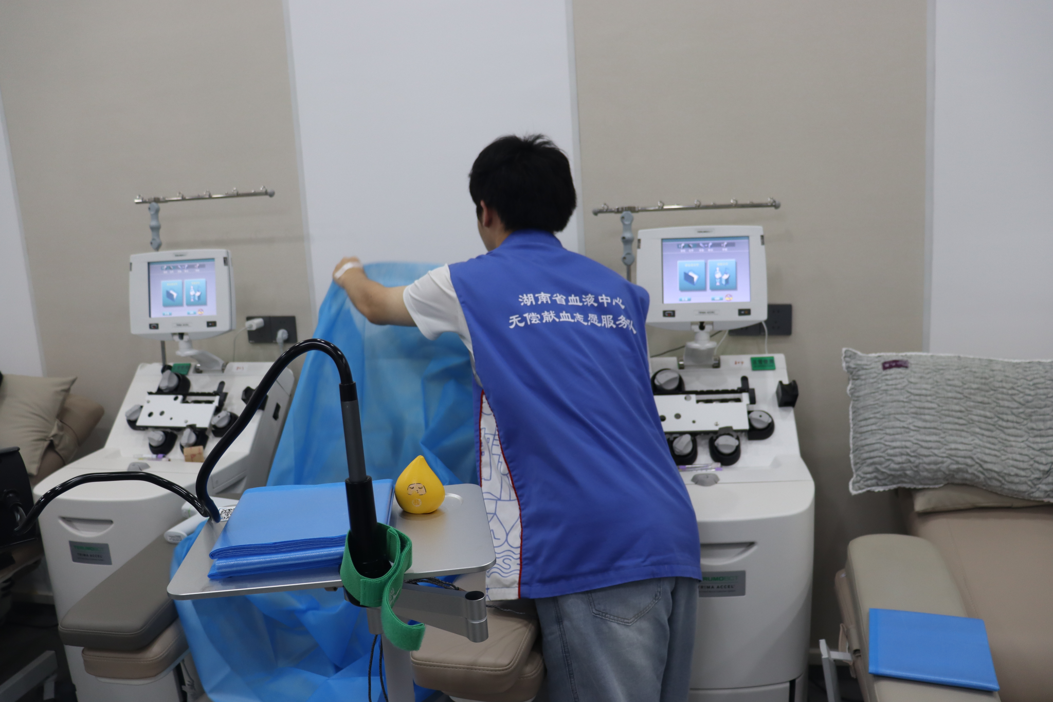 5月24日至25日上午,由医学部团委青年志愿者工作部组织的献血屋志愿活动在长沙绿地缤纷荟献血屋开展,部分医学部学生志愿者参与了此次活动。两天的活动中,他们以专业的服务和饱满的热情,为无偿献血者提供了细致周到的帮助,用实际行动践行了医学生的责任与担当。